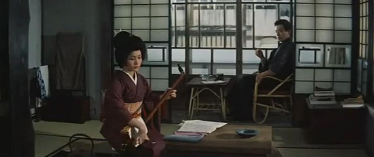 岛村(木村功饰)虽然研究一些欧洲舞蹈,但基本上是个坐食祖产、无所事事的纨绔子弟。他从东京来到多雪的上越温泉旅馆,结识在那里出卖声色的驹子(岩下志麻饰),驹子年轻貌美,不单能弹一手好三弦,还努力记日记,他们之间虽说是买卖关系,但驹子对岛村表现了比较真挚的感情;岛村则认为二人无非是露水姻缘,人生的一切均属徒劳。驹子对岛村表示理解,嘱他“一年来一次就成,带夫人来也欢迎,这样可以持久”。岛村一共来雪国3次,同驹子厮混,驹子对他则伺候饮食,陪同游玩,二人之间狎昵猥亵无所不至。尽管这一切都按艺妓制度计时收费,但岛村追求驹子的美貌,驹子赏识岛村的大度和学识。两人之间也流露了互相爱慕之情,最后挥手而别。岛村第二次前来雪国时,在火车上看到一位年轻貌美的姑娘,在精心照料一位患病的男青年。姑娘名叫叶子,青年名叫行男。当时,己是黄昏时分,车窗外夜幕降临在皑皑雪原之上。在这个富有诗情的衬景上,叶子的明眸不时在闪映,望去十分美丽动人。岛村凝视,不禁神驰。后来岛村得知叶子原来是驹子三弦师傅家的人,行男则是三弦师傅之子。岛村风闻三弦师傅活着的时候,曾有意叫驹子和行男订婚,驹子也是为给行男治病才当了艺妓的。但驹子对此表示否认,实际上对行男也毫无感情,甚至岛村二次离开雪国,驹子送到车站时,叶子跑来报告行男咽气,哀求驹子前去看看,驹子也未予理睬。岛村虽然欣赏叶子年轻貌美,但在第二次来雪国后的几次接触中,并未对她有爱的表示:直到在他离开雪国之前,剧场失火,发现叶子从二楼上掉下来死去,也只是略表同情而已。
