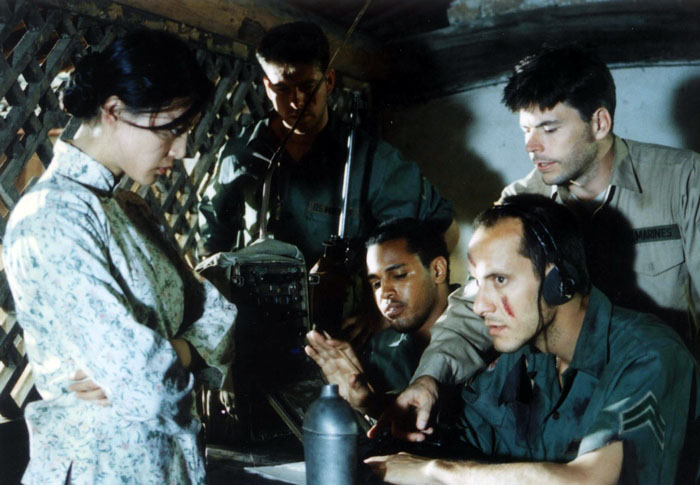 渔村里,渔民老万领着一支渔民抗日敢死队攻打日本据点,没有成功,老万率人马急忙撤退。几名美国兵被日军俘虏,但神秘的日本女子春子却逃脱了。