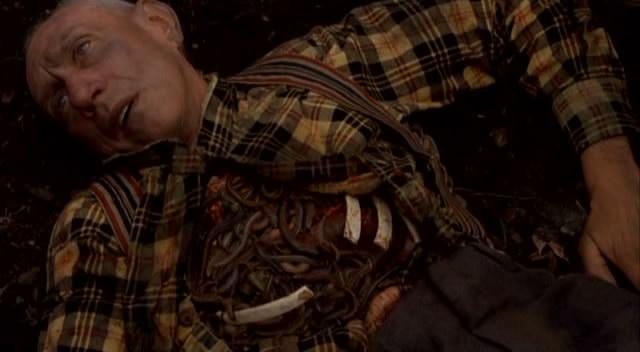 次日,艾玛和罗格来到湖中钓鱼,罗格此时贼心顿起,欲霸占艾玛争执中,钓鱼用的肉虫撒了一地,罗格同时也失去重心倒在地上,恐怖的一幕发生了:虫子争先恐后地钻入了罗格的皮肤,在其肌肉里来回游动!艾玛见状连忙跳船逃走。
